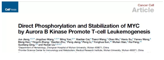 2 月 10 日,QY球友会生物复工的首天,QY球友会接到了来自武汉的好消息,QY球友会的客户武汉大学医学研究院刘胡丹教授团队在 Cancer Cell(IF 23.9)上发表了题为“Direct Phosphorylation and Stabilization of MYC by Aurora B Kinase Promote T-cell Leukemogenesis”的重大研究成果,报道了 AURKB-MYC 正反馈调控轴在急性 T 淋巴细胞白血病(T-ALL)的发生发展中起着重要作用,间接干预 MYC 是治疗 T -ALL 的潜在新策略。